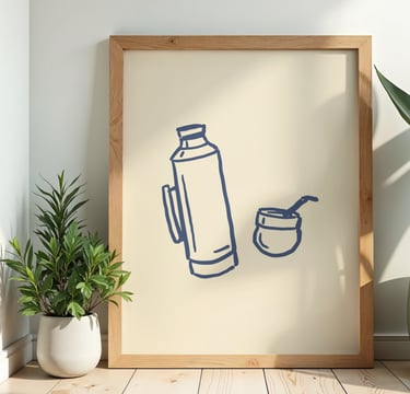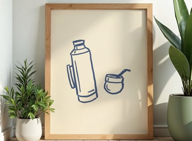 CUADRO MATE Y TERMO MINIMALISTA - MARCO DE MADERA